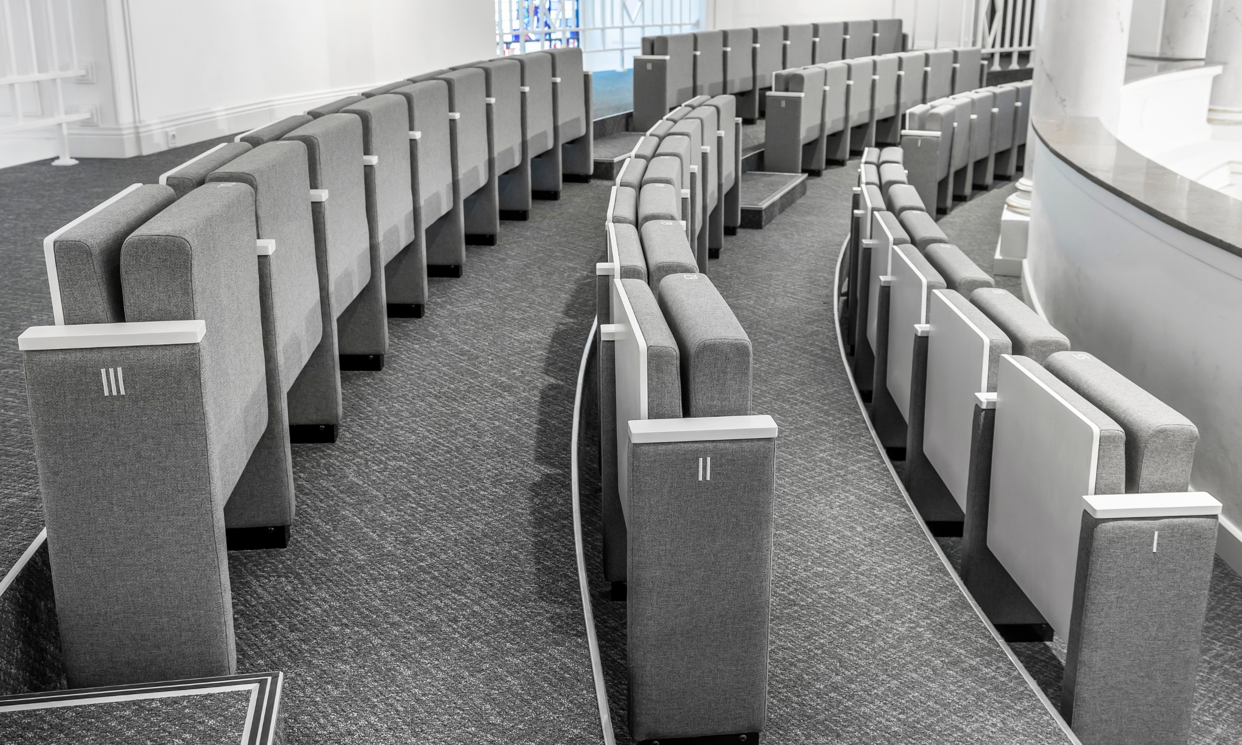 Unit combines minimalist design with versatile functionality, meeting the requirements of various public interiors. Its compact shape and adaptable mounting options make it suitable for both fixed and mobile installations. Upholstered finishes, optional protective panels, and a wide range of technical configurations allow for architectural and operational flexibility.